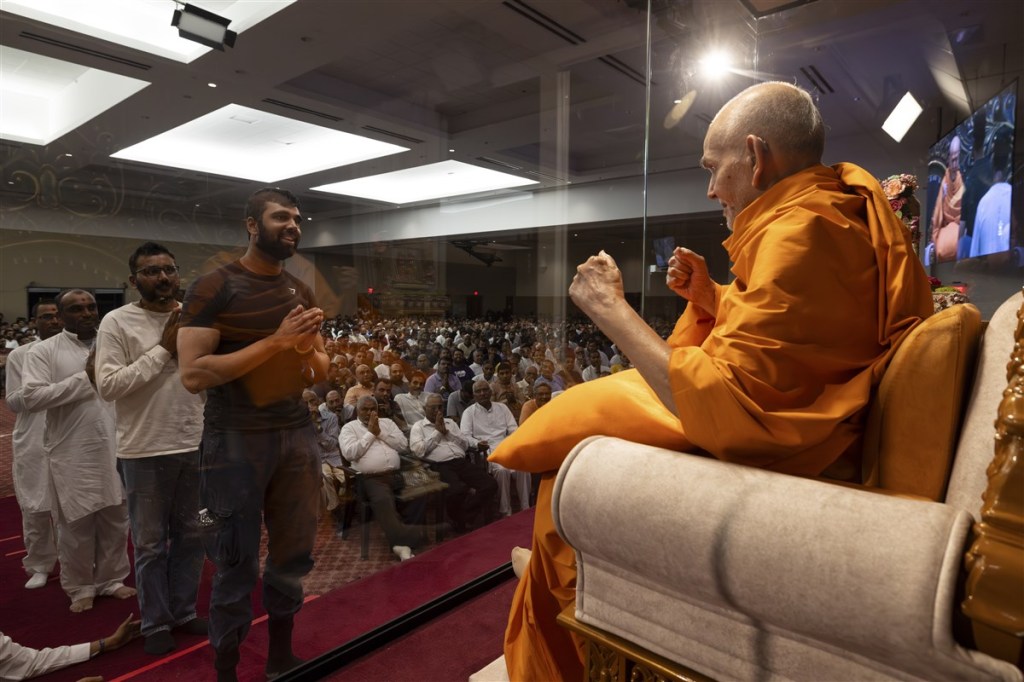 Despite his advanced age, Mahant Swami Maharaj continues to meet devotees daily, listening attentively to their problems, concerns, and questions. He listens without interruption and without haste, giving each person his full presence. This quiet act of listening itself becomes a spiritual practice, offering comfort and clarity to those who seek his guidance.